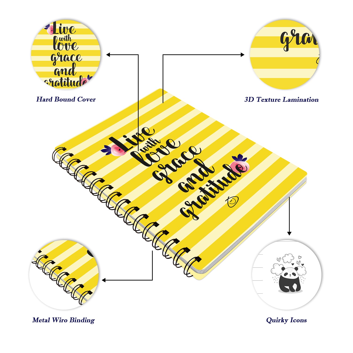 Stay organized in style : catchy designs with Laminated front and back Hard bound cover for durability