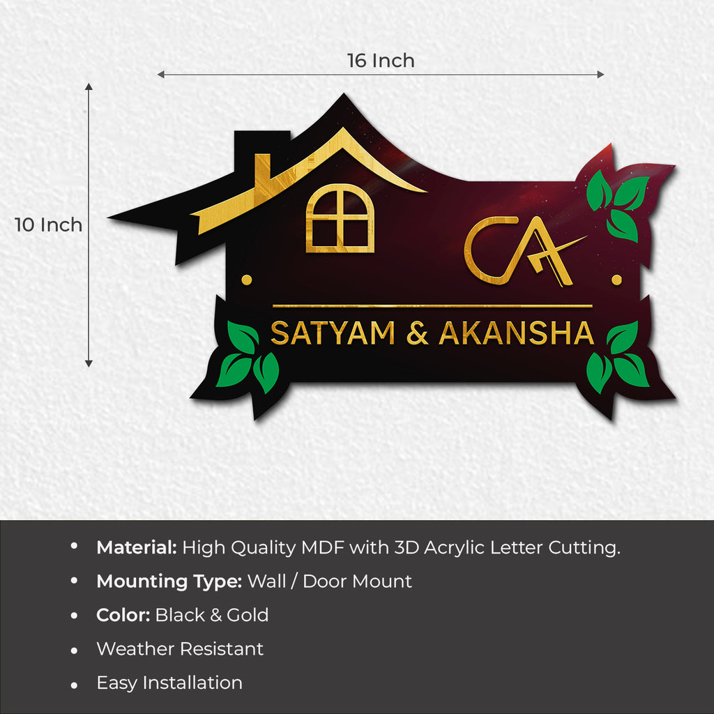 Enhance your Entrance:ย Imagine the elegance of our custom nameplates adorning your entrance. Whether mounted on a door or displayed on a wall, our nameplates add a stylish touch to your space, creating a warm and inviting atmosphere for your guests. Crafted with precision and attention to detail, each nameplate reflects our commitment to quality and craftsmanship, elevating the ambiance of your home or office. With a variety of designs and customization options available, you can truly make your mark and leave a lasting impression.