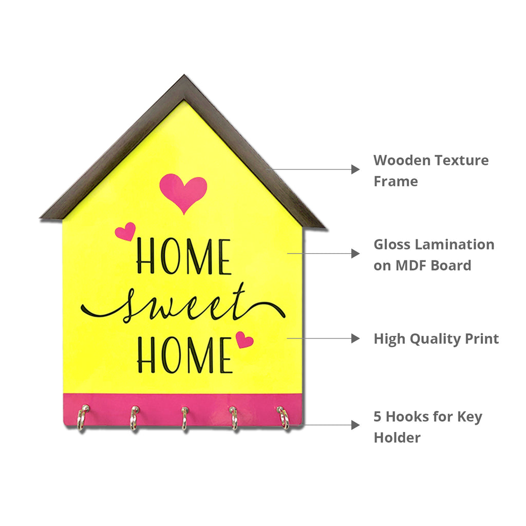 Make your home look beautiful by hanging your keys on this MDF Sweet Home Sweet key holder. This key holder can be hung at any place in your house to keep keys secured and can also be used as a wall decoration piece.