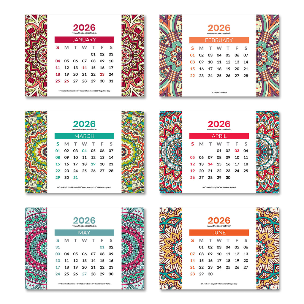 Stay organised in style with our 2026 Mandala Desk Calendar, designed with 12 colourful mandala themes. Printed on high-quality imported texture paper in high-quality and placed on a durable MDF base, giving it a premium, long-lasting finish.